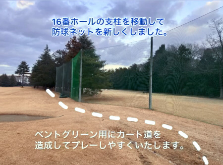 広くなったスペースにベントグリーン用に新たにカート道を造成して、今までよりカートからグリーンまでのアクセスが楽になり進行アップになります。